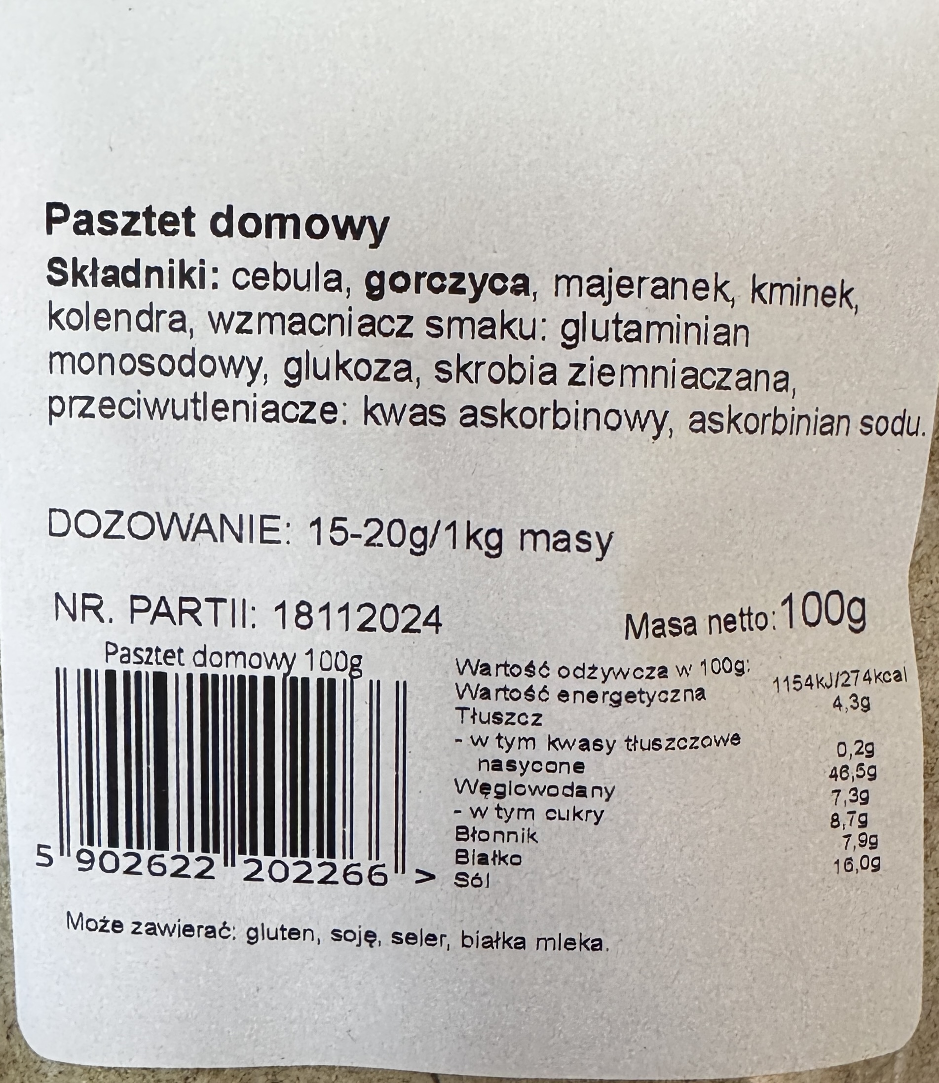 ilość Pasztet domowy